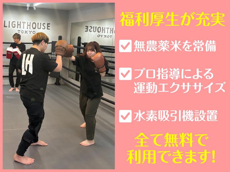 【保険制度】 雇用保険、労災保険、健康保険、厚生年金 待遇・福利厚生 【福利厚生】 \✨すべて無料/ プロ指導のキックボクシング 水素吸引機使い放題 無農薬米を会社で炊いて提供 自社農園(米・野菜)※今後本格化 ◇昇給 ◇賞与 ◇交通費全額支給 ◇社会保険完備(法定通り) ◇服装・髪型自由 ◇社員登用制度