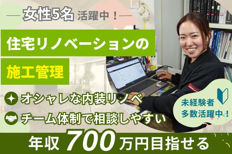 \オシャレなリノベに携わる/✅未経験者活躍✅女性5名活躍中!✅賞与(年2回)✅年収700万目指せる!