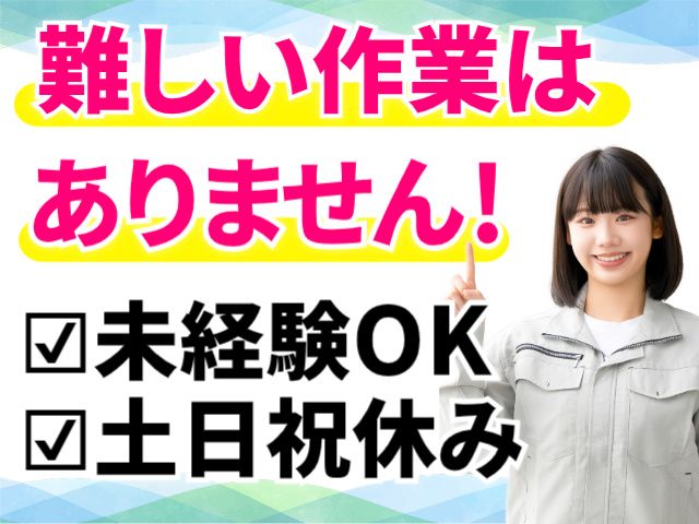 仕事内容 <10名以上の大募集!> 12月~随時スタート!開始日ご相談OK! 土日祝休みのお仕事! 簡単作業なので、すぐに覚えられます! 「倉庫内作業に興味がある」 「もくもく作業が好き」 「仕分けやピッキング経験がある」 そんな方におすすめです! ~おすすめポイント~ ・日勤固定 ・土日祝休み ・週払いOK ・交通費支給 【お仕事について】 工場内での仕分け作業を お願いします。 ~作業の流れ~ 備品の入った段ボールが 工場内に納入される ↓ 段ボールを開ける ↓ 中に入っている製品を 所定の場所に仕分ける たったこれだけのシンプル作業! 難しい作業はありません! 服装は基本自由! 動きやすい服をご準備ください! 【勤務時間】 8:30~17:30(休憩60分) 日勤のみで夜勤はありません! 生活リズムを崩さず働けます! 【土日祝がお休み!】 家族や友人と過ごす時間も しっかり取れる! プライベートも大切にできます! 【活かせる経験】 ・組立や梱包 ・倉庫内作業 ・入出庫作業 ・フォークリフト ・ピッキング、仕分け など こんな経験がある方は即戦力! もちろん、業務については 丁寧にお教えしますので、 未経験の方もお気軽にご応募ください! 【応募後の流れについて】 ・応募後はWEB登録応募フォームをお送りいたします。 当社へのご来社や履歴書のご提出は必要ありません! まずはお気軽にご応募ください! 【LINE公式アカウントを始めました!】 求人情報を受け取るには下記URLより 友だち追加お願いします! https://lin.ee/Ig1nF8x