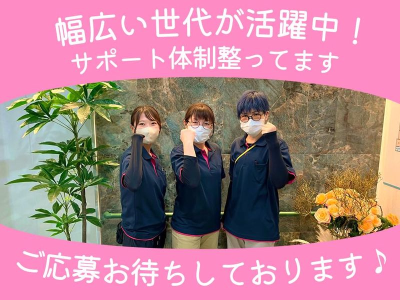 職場環境 <20代~60歳代まで幅広い年齢層在籍中> ⭐施設はアットホームで和やか ⭐スタッフ同士の人間関係が良好 ⭐人対人のお仕事なのでやりがいも感じやすい ⭐資格やスキルも伸ばせる環境 喫煙所:なし(敷地内全て禁煙)