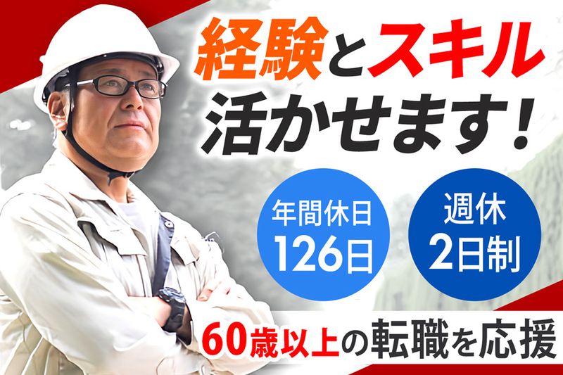 【アピールポイント】 【人びとの快適な暮らしを支える仕事】 ▶経験者必見!シニア世代の方も活躍できます ■管工事施工管理技士の資格をお持ちの方必見! ■年間休日126日!最長12週間の休暇あり ■貢献に応じて大きな昇給、賞与制度あり