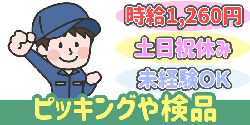 仕事内容 大手メーカーのタイヤを取り扱う倉庫内でのオシゴト ・ピッキングや検品 ・タイヤの乗せ換え作業 ~など 丁寧に教えてもらえるので未経験でも安心です 出張面接いたします!就業前の職場見学OK! まずは、お気軽にご応募ください! 18歳~50代後半の男性活躍中 ・就業場所は、あずま北小学校 近郊 オススメpoint ・うれしい土日祝休み ・ロッカー完備 ・午後に小休憩あり 仕事の効率UP ・駐車場あり マイカー通勤OK ・未経験者OK ・土日祝休みが良い方 ・日勤のお仕事お探しの方 ・長期で働きたい方 ・倉庫内作業ご希望の方 ・ほどよく体を動かすのがお好きな方 ・1月あたりの平均残業時間30h 【こんな経験活かせます!】 パート、アルバイト、契約社員 雇用形態問わず、下記の経験ある方は活かせます! ・倉庫内作業 ・ピッキング ・検品 ・積み替え ※もちろん必須ではありません! まずはお気軽にご応募ください ///////////////////////////////////////// (WEBでご応募の場合) お電話番号を記入していただくと ご案内がスムーズです。 /////////////////////////////////////////