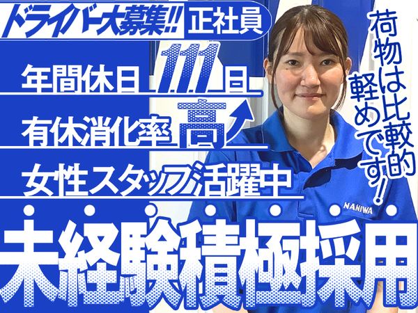 仕事内容 〜当社で働くオススメPOINT〜 ✅️近距離なので夜勤ナシ ✅️アパレル商品なので軽量♪ ✅️賞与年2回 ✅️AT限定の免許で運転できるトラックあり 2tトラックを使って、アパレル商品の配送・集荷をお願いします! 配送先は、東京23区や神奈川、埼玉、千葉、茨城など関東近隣県のファッションビル、百貨店、商業施設なので夜勤もありません。 取り扱うのはアパレル商品なので軽量なものが多いです! 積み降ろしも弊社独自の技術を採用しているので、手積みや手降ろしでも楽々ですよ✧ \\\ お仕事POINT /// ❖ 丁寧な研修で未経験の方も安心!  ̄ ̄ ̄ ̄ ̄ ̄ ̄ ̄ ̄ ̄ ̄ ̄ ̄ ̄ ̄ ̄ ̄ 弊社では、建築や営業など異業種から転職されてきた未経験の方が活躍されています! 未経験でも、新人教育専任のスタッフが浪速運送独自の教育カリキュラムに従い、1ヶ月半ほどかけてじっくり独り立ちまでサポート。 独り立ち後もスキルや習熟度に合わせてお仕事をお任せするので、無理なくお仕事できます✧ ❖ 男女関係なく活躍中!  ̄ ̄ ̄ ̄ ̄ ̄ ̄ ̄ ̄ ̄ ̄ ̄ ̄ ̄ ̄ ̄ ̄ 実際に弊社では多くの女性ドライバーさんが活躍しています。 配送先はある程度決まっているので、道を覚えるのも比較的簡単です! ❖ お休みも充実!  ̄ ̄ ̄ ̄ ̄ ̄ ̄ ̄ ̄ ̄ ̄ ̄ ̄ ̄ ̄ ̄ ̄ 年間休日は111日と多めなうえに、有給休暇も取得しやすく、取得率は全体で70%と高い水準です! 休みづらい雰囲気はありませんので、プライベートも大事にしたいという方にはおすすめです✧ ❖ 創業100年の安定企業!  ̄ ̄ ̄ ̄ ̄ ̄ ̄ ̄ ̄ ̄ ̄ ̄ ̄ ̄ ̄ ̄ ̄ 弊社はアパレル物流のパイオニアとして、もうすぐ創業100年になる安定した企業です! 「浪速」と聞くと、大阪を思い浮かべるかと思いますが、東京をはじめ千葉、神奈川など国内外に40以上の拠点を構えています。 長く安心してお仕事をしたいという方にはおすすめです! 【職場環境について】 浪速運送の職場はとても和やかで、ざっくばらんな方が多く気持ちのよい職場だと思います。 その雰囲気が好きだから長く勤めている、というスタッフも多いです。 また、新年会や忘年会、BBQなど様々なイベントも実施してスタッフ同士の交流を深めています! ✿社員インタビューや会社の魅力は下記URLもチェックしてみてください。 https://naniwa.bizpla.jp/job/ ================== 〈選考時に履歴書不要!〉 ご興味を持っていただいた方は、 弊社採用センターまでお気軽にお電話ください! お電話の際は仕事番号「41の3」とお伝えください。 【電話番号】0120-070-728 【受付時間】平日9:00~18:00 ※受付時間外はWEBよりご応募ください。 ==================