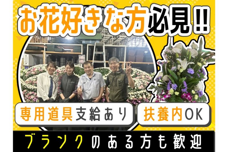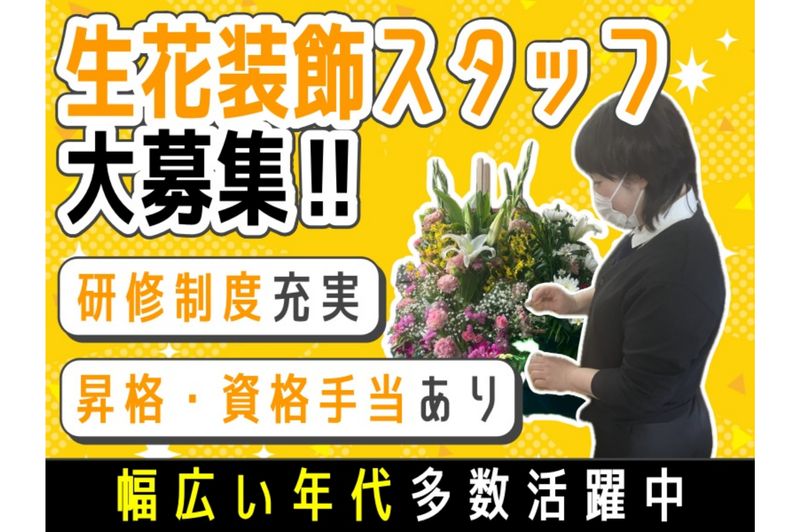 アピールポイント: ▼未経験・無資格でOK  ̄ ̄ ̄ ̄ ̄ ̄ ̄ ̄ ̄ ̄ ̄ 入社時に特別なスキルはなくてOK! 丁寧なサポート体制が整っているので 未経験の方でも安心してスタートできます。 現在活躍中のスタッフも 未経験から始めた方が多数! 「お花屋さんで働いていた」 「趣味で生け花をしていた」など お花が好きな気持ちを仕事に活かしています。 未経験からプロへと成長できる職場です。 ▼ひよどりフラワーについて  ̄ ̄ ̄ ̄ ̄ ̄ ̄ ̄ ̄ ̄ ̄ ̄ ̄ ̄ 葬儀会館での生花装飾を 主要事業としている会社です。 大手葬儀会社と提携しているため 業務量は毎年安定。 スタッフ増加に伴い 新たな事業展開も検討中! たくさんのご応募をお待ちしております!