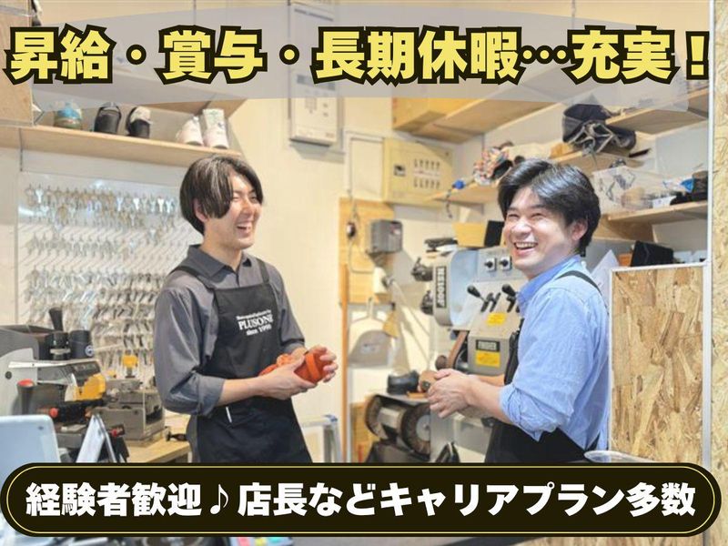 【保険制度】 雇用保険、労災保険、健康保険、厚生年金 待遇・福利厚生 【福利厚生】 ✅交通費全額支給 ✅昇給制度 ✅賞与制度 ✅有給休暇制度 ✅定期健康診断 ✅作業エプロン貸与 ✅社員特典 ┗靴修理・合鍵複製・ その他サービスの割引あり ✧⁎✧⁎✧⁎✧⁎✧⁎✧⁎✧⁎✧⁎✧⁎✧⁎✧⁎✧⁎✧ 運営母体がしっかりしているため、 充実の福利厚生です! 男女問わず、安心して 働くことができます◎ ✧⁎✧⁎✧⁎✧⁎✧⁎✧⁎✧⁎✧⁎✧⁎✧⁎✧⁎✧⁎✧ <こんな経験は活かせます> 靴修理スタッフ、リペアスタッフ、 アパレル販売スタッフ、 リフォーム・お直しスタッフ、 縫製スタッフ、バッグ修理スタッフ、 時計電池交換スタッフ、 アクセサリー販売スタッフ、 革製品メンテナンススタッフ、 クリーニングスタッフなど
