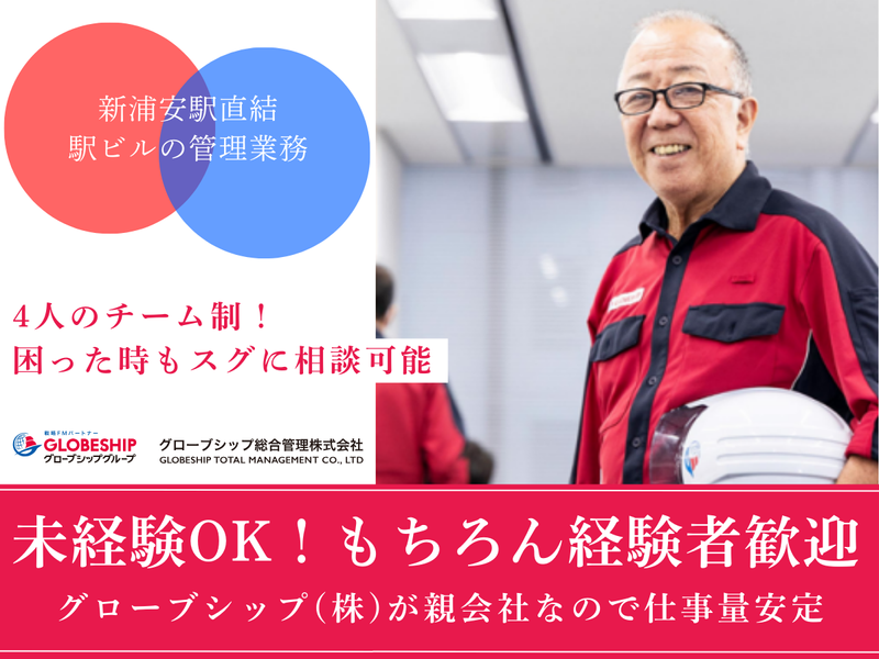 仕事内容 ╭───────────・⭐・・─╮ ➰未経験スタート歓迎! ➰賞与年2回!50万円以上! ➰残業少なめでプライベート充実 ➰安心の研修制度あり ╰─・・⭐・───────────╯ 【 お仕事内容 】 「新浦安駅」直結の 駅ビルの管理業務をお任せします。 ❐定期巡回 ❐巡回点検 ❐不具合発生時の一時対応 ❐施設利用者様・テナントの方の窓口対応 ❐その他、報告書の作成・提出 など ⭐\ 安心のチーム制 /⭐ 4人チームで業務にあたるため、 困ったことはすぐに相談可能です! チームでサポートし合って 業務にあたっています! ⭐\ 未経験OK!経験者も大歓迎 /⭐ 責任者やベテランスタッフも 一緒に作業を行うので、 ブランクのある方も 安心して始められる環境です! ―・。*―・。*―・。*―・。*―・。* ✨大手企業のグループ企業でのお仕事 ビルメンテナンス、マンション管理などの 建物管理事業の大手、 グローブシップ株式会社の グループ企業なので、 高い安定性の下で腰を据えて 働くことが出来ます! ✨アルバイト・契約社員等から 正社員にステップアップしたい方も大歓迎! 勤務前後に役所等の手続きも可能です♪ ―・。*―・。*―・。*―・。*―・。*