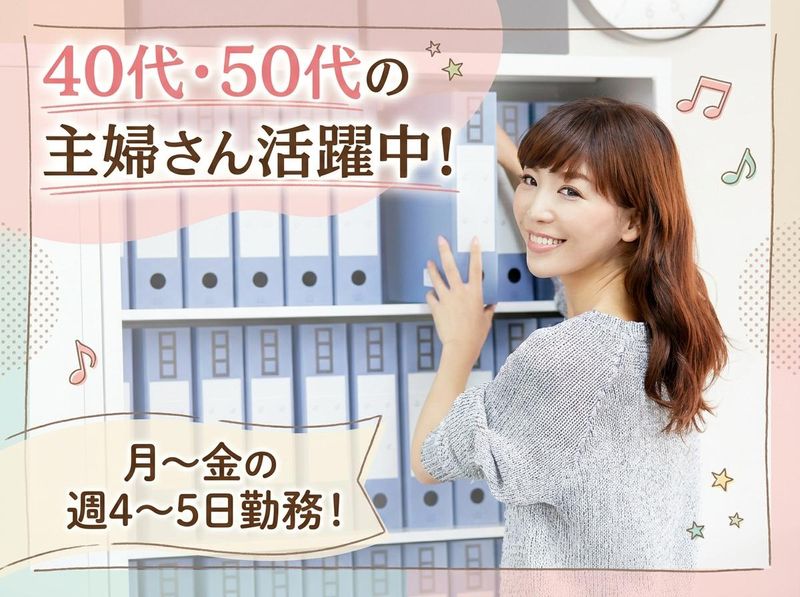 仕事内容 ꧁━━━━━━━━━━━━━━━꧂ お店や街中で見かけるあの商品を 縁の下で支える事務のお仕事✨ 40代・50代の主婦さんが活躍中! ꧁━━━━━━━━━━━━━━━━━꧂ 「久しぶりの仕事、私にできるかな…」 そんな方こそ、ぜひ読んでみてください◎ 当社では化粧品・キャラクターグッズ・ ディスプレイ商品など、 コンビニや雑貨屋さんでよく見かける 身近な商品を扱っています♪ そんな商品を支える 事務スタッフを募集しています! ┈┈┈┈┈┈❁❁❁┈┈┈┈┈┈┈ ✅ 主なお仕事内容 ┈┈┈┈┈┈❁❁❁┈┈┈┈┈┈┈ ✔ 電話・来客対応 ✔ データ入力 ✔ 書類作成・ファイル管理 デスクワーク中心で 重い荷物・立ち仕事はありません♪ 基本的なPC操作ができればOKです◎ ┈┈┈┈┈┈❁❁❁┈┈┈┈┈┈┈ ✅ 働き方は相談できます ┈┈┈┈┈┈❁❁❁┈┈┈┈┈┈┈ ⏰ 勤務時間 9:00〜15:00 / 16:00 / 17:00 ※時間・曜日は相談OK! ⏰ 勤務日数 月〜金の週4〜5日が基本 ※扶養範囲内での勤務もOK♪ 「15時までで帰りたい」 「もう少し長く働きたい」 あなたのご希望を一緒に考えます! ┈┈┈┈┈┈❁❁❁┈┈┈┈┈┈┈ ✅ 職場の雰囲気 ┈┈┈┈┈┈❁❁❁┈┈┈┈┈┈┈ ★ スタッフ同士の仲が良く なんでも話せる関係性♪ ★ 上司ともフランクに話せて 風通しバツグン! ★ 40代・50代のスタッフが多く 同世代がいるから安心◎ ★ 冷暖房完備で快適オフィス✨ ┈┈┈┈┈┈❁❁❁┈┈┈┈┈┈┈ ✅ 自分らしく働けます ┈┈┈┈┈┈❁❁❁┈┈┈┈┈┈┈ ♡ 服装自由 ♡ 髪型・髪色自由 ♡ ネイルOK ♡ ピアスOK 窮屈なルールなし! 自分らしいスタイルで のびのび働けますよ♪ ┈┈┈┈┈┈┈┈┈┈┈┈┈┈┈┈ 不安なこと・気になることは 面接でなんでも聞いてください◎ スタッフ一同、 あなたとお会いできるのを 楽しみにしています!✨