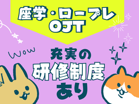 試用期間あり 試用・研修期間:1ヶ月 試用・研修期間の条件:勤務時間条件が異なる ✅入社日:3/2(月) ※試用期間:入社から翌月末まで (試用期間中も同条件/時給変動なし) --------------------------- ⭐研修スケジュール --------------------------- 時間:9:00~18:00(実働8h) 【STEP1】座学・ロープレ ・期間:3/2~3/31 ・シフト:平日のみ週5日 【STEP2】OJT研修 ・期間:4/1~3週間程度 (習熟度により変動あり) ・シフト:平日のみ週4日以上 【勤務形態】 本採用と異なる 勤務形態:固定時間制