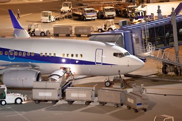 飛行機に関わる運搬スタッフ