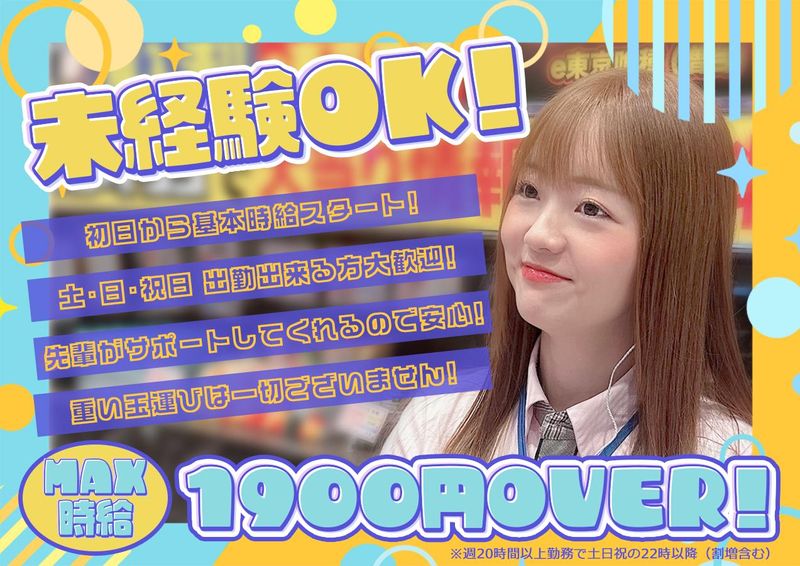 仕事内容 パチンコ店でのホール・カウンタースタッフ 未経験でも安心して働けます! 時給1250円~!高時給!MAX時給1900円OVER!(割増含む) 土日祝だけでもOK! Wワーク・フリーターも大歓迎! フルタイムでめいいっぱい働ける方大歓迎!! ∴‥∵‥∴‥∵‥∴‥∴‥∵‥∴‥∵‥∴‥ <ここがポイント> ・併設ローソンにて従業員割引あり! ・アルバイトでも入社半年経過で 有給休暇あり! ∴‥∵‥∴‥∵‥∴‥∴‥∵‥∴‥∵‥∴‥ 広々とした明るくキレイな店内での ホール・カウンター業務をお任せします。 遊び方がわからないお客様に声をかけて 操作方法などを説明したり、 常にお客様が快適に遊んで頂けるよう ホールに目を配っていただくお仕事です。 店内アナウンスや景品交換に携わって いただくこともあります。 【重い玉運びは一切ありません!!】 当店ではすべて機械で対応するので 力仕事が苦手な方でも安心して働けます! パチンコ・スロットの知識がない方や 接客のお仕事が初めての方でも大丈夫! 「パチンコ・スロットをやったことがない…」 「パチンコ屋さんに入ったことがない…」 そんな方もいらっしゃると思いますが 安心してください! いきなりお客様がいるホールに立つのは ドキドキしちゃう…という方でも大丈夫! ホールに立つ前に、丁寧な事前研修が あります。 サービスマナーの基礎からパチンコ台の 操作方法などじっくり落ち着いて学べるので 安心してホールデビューできますよ◎ もちろん、ホールに出てからも安心! 先輩たちが一つずつお教えします。 なんたって、仲間想いでお世話好きな 先輩たちばかり揃っています(笑) 先輩がそばにいない時には「インカム」 というマイクのような機械ですぐに質問を することも可能◎ 一人でアタフタ…という状況には なりません。 慣れてくると常連のお客様と顔見知りになり 会話が弾みます! 「今日も暑いねー。室内にいても水分とってね。熱中症気を付けなよっ!」 …なんて、お客様に心配してもらっちゃう こともありました。(笑) スタッフ同士はもちろん、 お客様とのコミュニケーションも 楽しいお仕事です!