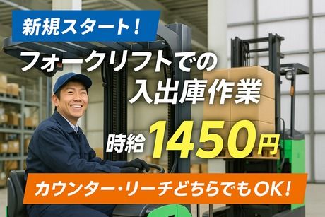 仕事内容 フォークリフトでの入出庫作業|時給1450円 機械部品の入出庫/リーチ・カウンターどちらもOK モクモク集中できる“倉庫ワーク”で安定収入◎ 【お仕事内容】 ・フォークリフト(リーチ/カウンター)での入庫・出庫・格納・ピッキング ・伝票/指示書に沿った棚入れ・在庫移動 ・目視での数量確認・簡単な検品 ※手作業は最小限、安全第一の作業動線です <おススメポイント> ◎ 新規取引スタートの注目案件! ◎時給1450円でしっかり稼げる!(フルタイム想定の月収例:24万3,600円/8h×21日) ◎リーチ・カウンター両方歓迎:得意タイプを活かせます ◎扱うのは機械部品中心:パレット単位での入出庫がメイン ◎経験が活きる環境:ブランクある方も歓迎