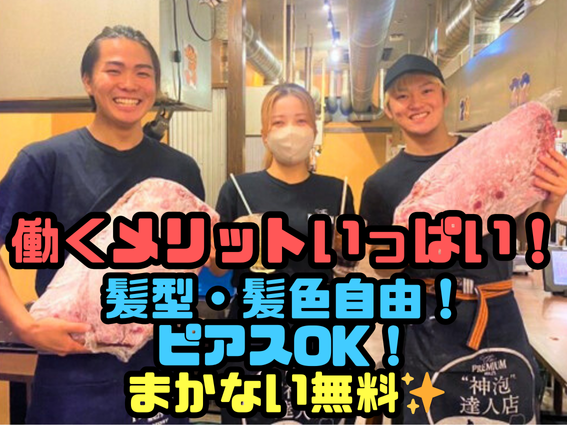 仕事内容 ✨\筋トレ=タンパク質=焼肉/✨ 筋トレ好きにはたまらない職場です! 働きながらタンパク質摂取! ▹◃┄▸◂┄▹◃┄▸◂┄▹◃┄▸◂┄▹◃ ✅1日3h~OK! ✅初バイト・未経験大歓迎! ✅ネイル・ピアスOK! ✅髪型髪色自由✨ ✅美味しいまかない無料! ▹◃┄▸◂┄▹◃┄▸◂┄▹◃┄▸◂┄▹◃ <お仕事内容> ◆お客様のご案内 ◆料理の配膳 ◆レジ対応業務 ◆その他清掃業務など /)_/) (*・ω・)<焼肉バイトって魅力的♡ ―U―U―――――――――――――+ ✅接客が初めてでも大丈夫!! タッチパネル導入でオーダー対応不要! ホールもキッチンもミスなく安心して 業務が出来る環境ですよ! ✅超絶怒涛のまかない無料!✨ 筋肉には必須のタンパク質! 筋肉のためにバイトの時間がもったいない・・ そんな心配無用✨ 稼ぎながらタンパク質GETで一石二肉!! ✅安心の研修制度 マンツーマン研修xマニュアル完備 なので未経験の方も安心スタートOK! ―――――――+――――――――+