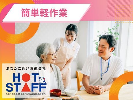 仕事内容 《身体介助なし・老人ホームでお洗濯や調理補助》月木+土or日の勤務/経験不問/車通勤OK 【ここがポイント!】 \ 身体介助なし! / 老人ホームでお洗濯やお掃除、 ご飯の準備などサポート業務をお任せ♪ ●未経験者さん大歓迎◎ ┗資格・経験不問です! ●車通勤OK ┗無料の駐車場があります ●週20時間勤務 ┗プライベートとの両立がしやすい ー・ー・ー・ー・ー・ー・ー・ー・ー・ー・ー・- 【企業概要】 住宅型有料老人ホーム ー・-・-・-・-・-・-・-・-・-・-・- 【作業内容】 ◇老人ホームでサポート業務◇ (1)1日2回、シーツや衣類のお洗濯 ┗洗濯→干す→取り込む (2)施設内のお掃除 ┗館内のモップ掛けやほうきで外掃除など (3)日用品の受け取り ┗おむつなどの備品を受け取りしまう (4)食事の準備 ┗チルド食品を湯煎で温める (5)食材の買い出し ┗社用車を運転します このような業務をお願いします! 一緒のシフトの方と協力をしながら 作業をするので安心してくださいね♪ *身体介助はありません ー・-・-・-・-・-・-・-・-・-・-・- 【時間・休日】 《 月曜日・木曜日 》 8:30~17:30 実働8時間、休憩60分 《 土曜日・日曜日》 8:30~21:00の間で 実働4時間、休憩なし *時間帯の相談OK *週3日勤務 【月収例】 時給1250円×週20時間×4週=10万0000円 ー・-・-・-・-・-・-・-・-・-・-・- 【環境・雰囲気】 施設全体で40名ほどの方が就業されています。 同じ作業する方が10名ほど みえるのでわからない作業が あればいつでも相談してくださいね! ●服装自由 ┗デニムやスウェットなど動きやすい服装でOK ●身だしなみ ┗髪色は茶髪までOKです ●休憩室完備 ┗レンジ・冷蔵庫・ポットがあります ●個人ロッカー支給 ┗鍵付きで安心♪ / 職場見学会、実施中!! \ 少しでも気になったあなた! ぜひお気軽にお問合せください◎ ー・-・-・-・-・-・-・-・-・-・-・- 【ご応募】 気になる求人が見つかったら エントリーボタンを押してください◎ 平日17時までのご応募の場合、当日中に 担当者からご連絡をさせていただきます。 17時以降、もしくは土日のご応募の場合は 翌営業日に、担当者から ご連絡をさせていただきます。 052-769-4300 こちらの番号から着信がありましたら ご対応をお願いいたします。 *履歴書不要 *私服でOK 面談時にお持物はありません。 お気軽にご相談にいらしてください。 ー・-・-・-・-・-・-・-・-・-・-・- 【ホットスタッフ名古屋東 所在地】 愛知県名古屋市名東区豊が丘48番地2 お車でお越しの方は、 事務所の1Fに駐車スペースがございますので そちらにお停めください。 ー・-・-・-・-・-・-・-・-・-・-・- PR・職場情報 「ブランクOK」 「未経験者歓迎」 「車通勤OK」 「服装自由」 「残業なし」 「社会保険完備」 「履歴書不要」 「交通費支給」 ☆おススメポイント☆ ・勤務期間:長期 ・未経験者歓迎 ・簡単軽作業 ・車通勤OK ・時間帯応相談 ・残業なし ・屋外分煙 ・通勤手当支給※規定あり ・退職金制度あり 求人ID:250986740005 拠点コード:0967