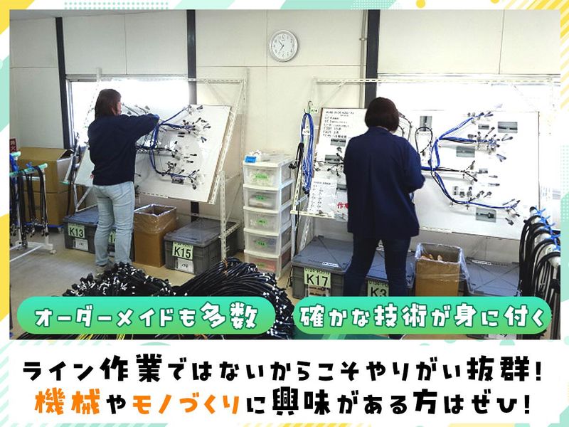 仕事内容 ━━━━━━ 昔ながらの地域密着型モノづくり企業! ━━━━━━ 当社は創業68年! モノづくり業界に不可欠な ハーネスやケーブルの製造で 技術を磨いてきました。 ・様々な機器の動力となる電力 ・制御に必要不可欠な電気信号 それらを伝える役割を持つ部品が [ワイヤーハーネス]です! 今回はこれまで当社が培った技術を 次世代へと繋いでいただく 新メンバーを大募集! ━━━━━━ お任せするお仕事 ━━━━━━ お客様の要望に合わせた ケーブルやワイヤーハーネスを 製造するお仕事です! ◇工具を使用した手作業での加工 ◇自動機のオペレーション ◇お客様先への訪問同行 など ※過度に重いものを持つなどの 力作業はありません。 入社後は研修・教育期間として イチから丁寧にお教えします◎ ━━━━━━ 完全未経験でも大丈夫! ━━━━━━ 専門用語の勉強から 実際の作業工程まで、出来る範囲から 少しずつ学んでいけますので ご安心ください♪ 過去には同業種の方から、 携帯販売員、商社出身の方など 異業界出身の先輩たちも入社! 何十年と技術を磨いてきた 頼れる先輩たちがそばでじっくり レクチャーしていきますのでご安心を! 教育履歴や日報をふまえて 会社全体であなたを育てます◎ ━━━━━━ モノづくりって面白い!! ━━━━━━ ・ライン作業で退屈そう… ・同じ仕事ばかりでやりがいが… そんな心配していませんか? 当社が扱う製品はお客様の要望に 合わせたオーダーメイドがほとんど! そのため太さ、長さ、大きさなど 実に様々!中には顕微鏡を使って 作業するような極小製品を 扱うケースもあるんです。 ライン作業ではなく毎回異なる 作業工程をふむため、毎日が発見の連続! 難しさもありますが、やりがい十分の モノづくりワークなんです! ━━━━━━ 見えないところに当社の技術あり! ━━━━━━ ■病院の医療機器 ■普段乗る自動車や電車 ■TVで紹介される最新ロボット ■物流に必要不可欠な船舶 など ハーネスは私たちの暮らしに なくてはならない多くの機器に 使われており、そのニーズが 途切れることはありません。 「あそこに自分がつくった製品が 使われているんだ…」 そんな誇りを持てる仕事です! ━━━━━━ 資格取得やキャリアUPも徹底支援! ━━━━━━ 「未経験から手に職を付けたい!」 そんなあなたを当社は応援♪ 『電子機器組立技能士』『技能検定』など、 業務に活かせる資格の取得費用は 全額会社で負担します! また、意欲的な方であれば 成長に応じて役職などの裁量ある ポジションもお任せしたいと 思っております◎