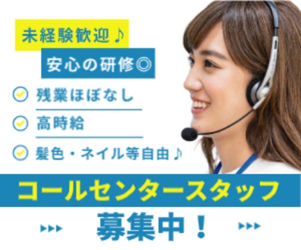 応募資格 ・コールセンター未経験でもチャレンジOK! ・PC基本スキル(専用端末の操作を習得できる/文章入力がスムーズにできる) ・お仕事に意欲的に取り組める方 ・男女ともに歓迎(男女比→男性:女性=4:6) *学歴不問 *経験不問