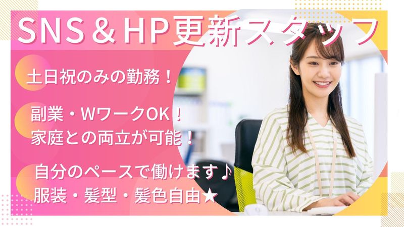 求めている人材 【歓迎】 ・HPやSNSの更新をした事がある方歓迎 ・ブランクOK/扶養内勤務歓迎/Wワーク可 ・主婦・主夫歓迎 <こんな方にぴったり!> ☑ 家族がいる週末に短時間で働きたい ☑ スキルを活かして無理なく稼ぎたい ☑ 週末だけの副業・掛け持ちを探している