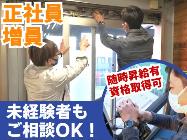 仕事内容 未経験大歓迎!仕事をしながら資格が取れる! 業務多忙のため正社員大増員! 【仕事内容】 自動ドアやアルミサッシなどの建具の設置作業 ・オフィスや商業施設などの施工現場へ製品を車で納品 ・自動ドアやアルミサッシなどの建具の設置・交換、動作確認など 最初は先輩に同行して、作業の手伝いからスタート。 現場の養生や後片付けといった補助作業を行います。 ※2人1組での作業です ※東京都内、千葉県・茨城県・神奈川県など関東近郊での作業です (施工現場へは普通車(AT車)で移動します) 〇未経験から「手に職」が身につく 費用会社負担の資格取得支援があります。 ・高所作業(フルハーネス特別教育など) ・自動ドア施工技能士 ・サッシ施工技能士 などを中心に業務に役立つ資格取得を支援します。 実務経験を積んでスキルアップを目指しましょう! 〇週休2日制 基本土日休みですが、出勤の場合もあります。 (出勤時は平日に振替休あり) 夏季・GW・年末年始の長期休暇もしっかり取れます。 〇スキルUPには能力給や昇給で応えます 技術に応じてどんどん昇給。未経験でも月給25万円。 将来的には月給45万円も可能です。 これまでに現場作業や工事スタッフ、配送設置ドライバー経験がある方は活かせます。 20代から40代、50代中高年まで幅広い年代が活躍中。 お仕事にブランクのある方の転職もOKです。 お気軽にご連絡ください。