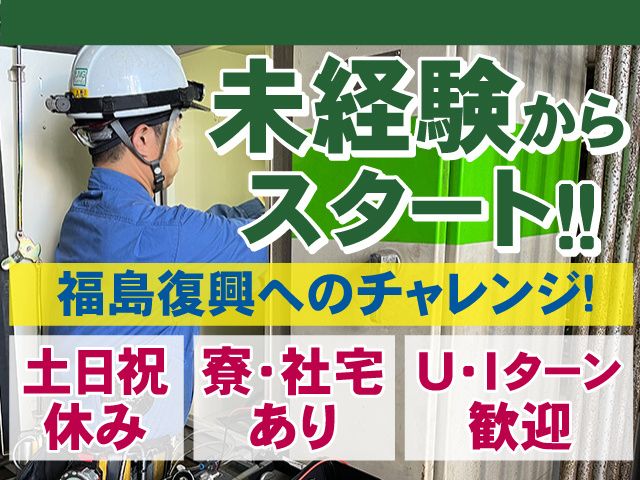 【土日祝休み】未経験から福島の復興へチャレンジ! 遠方の方も安心◎個室寮あり!生活安定!