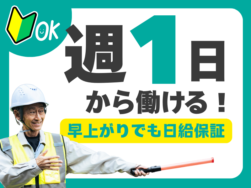 仕事内容 \ 警備未経験の方歓迎! / 簡単業務でガッツリ稼げるレアバイト♪ ⭐ このお仕事のポイント ⭐ ✅未経験でも安心の新人研修あり◎ (約3日間/中央区にて実施) ✅「こちら通行止めです」「車が通ります」 通行人や自動車を誘導する簡単バイト ✅天候による早上がりでも日給保証◎ 週1日から好きな日に働けます! ✅平日のみ・土日祝はお休み♪ 希望休や連休も取得可能◎ - ⭐ 具体的なお仕事内容 ⭐ 工事中のマンションや道路工事現場周辺にて ・警備 ・交通整理 ・歩行者誘導 など ✅昭和町エリア周辺にて勤務になります。 ✅案件終了まで希望勤務地で固定勤務OK ✅終了後、弊社より近隣エリアのお仕事をご紹介します。 ⭐ 入社後の流れ ⭐ ◇新人研修(2~3日間) 研修場所:大阪市中央区船場中央3丁目1-7 アクセス:本町駅・堺筋本町駅から徒歩4分 研修内容:動画研修、講師によるレクチャーなど 研修期間中は、上記の研修場所に 出勤していただきます。 研修後は希望の勤務地で働けます♪ ⭐ 勤務時間について ⭐ ⏰8:00~17:00(実働8h、休憩1h) ┗基本月~金/週1日~OK! ※現場により変動あり シフト自己申告制 ・基本残業なし ・早く仕事が終わっても日給保証♪ ・基本日勤のみ◎ ・基本土日祝休み ・希望休もちゃんと確保できます♪ 長期休暇・連休も取得OK◎ ⭐ 志望動機は自由! ⭐ ✅ガッツリ稼ぎたい! ✅ブランク復帰で活躍したい ✅しっかり休みが取れる職場がいい など、なんでもOK! 未経験・ブランク復帰も歓迎です◎ ⭐ 30代フリーターさんインタビュー ⭐ 以前は派遣で土木作業をしていましたが、 日勤夜勤交代制で体力的にきつかったため、 日勤のみでちゃんと休みを大事にできる 当社に応募しました。 入社後の新人研修では、動画研修や 講師の方にレクチャーしていただいたりと かなり手厚く、未経験でも安心して お仕事を覚えることができました◎ 基本的に残業もなく、 希望休や連休も取得できて働きやすいです。 また、早く仕事が終わっても日給保証なので、 収入も安定して助かっています! これからも長く続けていきたいです。