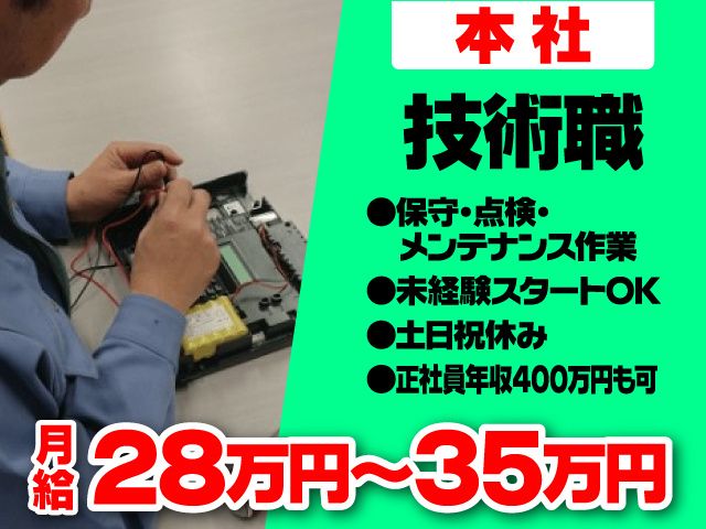 セキュリティ機器の設置・メンテナンス/年収400万円可/土日祝休み/電気工事・整備の経験が活きる