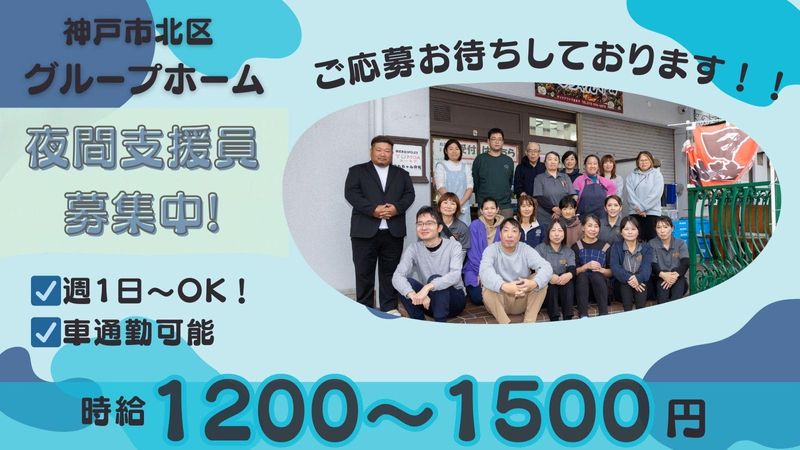 仕事内容 ─┘─┘─┘─┘─┘─┘─┘─┘─┘ ▼働きやすい理由&魅力▼ ✅未経験から始められる障がい者支援 ✅週1日~OKでライフスタイルに合わせやすい ✅家事や見守りが中心の夜間業務 ✅休憩時間が4時間としっかり確保されている ✅資格や経験が活かせます ─┘─┘─┘─┘─┘─┘─┘─┘─┘ ≪業務内容≫ 知的障がいや精神障がいのある方が、自立した日常生活を送るためのサポートをお任せします。 ▼ ↓↓ 具体的なお仕事 ↓↓ ▼ ・利用者様の安否確認や見守り ・食事の準備や後片付け ・共用スペースの清掃 ・就寝、起床時のサポート ・夜間の記録業務 >>>経験ゼロでもこれで安心 1|入社後の研修で、障がい者支援の基礎から学べます。 2|家事の延長線上でできる仕事内容です。 3|先輩スタッフが常にサポートするので安心です。 4|困ったことがあれば、いつでも連絡がとれる体制です。 ⇒ 未経験の方でも、安心して働き始められる環境です! 【この環境で働く魅力など】 01.│「夜勤専従でしっかり稼げます」 →夜間は時給が上がり、効率良く稼ぐことができます。Wワークや副業で収入を増やしたい方にもおすすめです。 02.│「無理なく働けるシフト制」 →週1日から勤務OK!自分の都合に合わせてシフトを組むことができるため、プライベートとの両立がしやすいです。 03.│「人の役に立てるやりがいのある仕事」 →利用者さんの自立をサポートすることで、感謝されたり、成長を間近で見られたりするやりがいがあります。 <✨他にはない、ここで働く魅力✨> →夜勤に特化した勤務で、家事や見守り業務が中心となります。しっかり休憩も取れるので、体力に自信のない方でも安心して働けます。