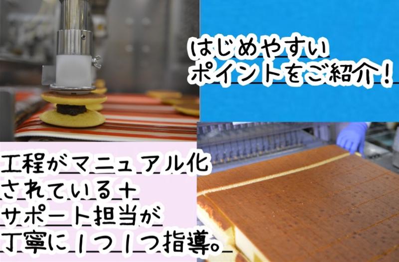 アピールポイント: 【こだわり】 和洋菓子の製造販売を行っており、 生地作りをはじめ、ひとつひとつ 手間をかけて作っています。 【全国に商品展開】 幅広い年齢層の皆様より信頼と ご愛顧をいただき製品を全国各地へ 送り出す事が出来ています。 全国47都道府県全域や海外の お客様によりいっそう ご愛顧いただけるよう こだわった商品を作ります! --- こんな方に選ばれています: ・ワーク・ライフ・バランス重視の方 ・環境を変えて新しくスタートしたい方 ・細かい作業が苦にならない方 ・協力的でチームプレイヤーな方 --- 指導方法(入社後の流れ): 焦らず、ゆっくり、まずは丁寧に、 慣れていただくことを最優先。 お願いする仕事や必要な知識は 着実に身につけていただけるように 習熟度に応じて適切なサポートを 行っていきますのでご安心ください。 ---