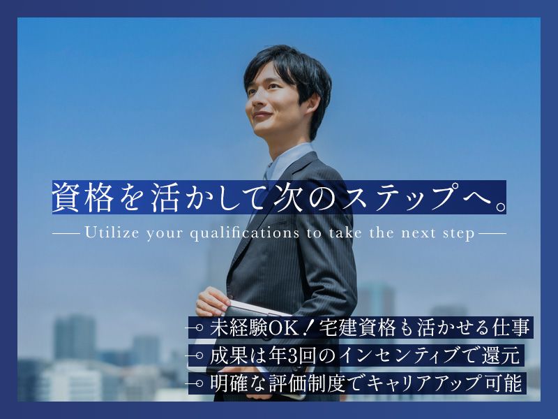 仕事内容 <採用残りわずか!> _/_/_/_/_/_/_/_/_/_/ 個人の頑張りは インセンティブでしっかり評価! お金も休みもこだわりませんか? _/_/_/_/_/_/_/_/_/_/ ↓↓求人のPOINTを要チェック↓↓ ✅月給28万円スタート! ✅インセンティブ賞与は年3回! ✅年間休日110日以上&長期休暇あり。 ✅研修制度も充実! …まだまだ魅力は尽きません! ↓↓ 気になる方はこの先をCHECK ↓↓ 【 仕事内容はコチラ 】 あなたには不動産売買仲介に関連する 業務をおまかせします! ▽具体的な業務はコチラ ・来店されたお客様の対応 ・物件のご案内 ・重要事項説明および売買契約 ・広告のポスティングなど 【 ゼロから成長しよう! 】 教育体制が充実しているため、 資格があれば未経験者もOK! 初めての方も安心して働けます。