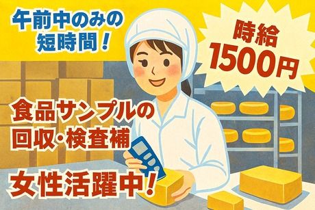 仕事内容 大手食品工場での安定ワーク!未経験者も多数活躍中!食品サンプルの回収・検査補助! 乳製品を製造している大手食品工場でのオシゴトです。 サンプル商品を回収したり、 試験分析室に持ち込み、 成分・細菌・製品・原料などの簡単な検査補助をお願いします。 ◎ 専門知識は一切不要! ◎ 簡単なPC入力作業あり ◎ 未経験からスタート大歓迎! ■おすすめポイント ・高時給1,500円! └午前中だけでしっかり稼げる! ・短時間勤務(8:35~12:35) だから家事・育児との両立もバッチリ ・土日祝休みで家庭やプライベートと両立可能 ・55歳までの女性活躍中! └幅広い年代がイキイキと働いています! ・清潔な食品工場内で安心して働ける環境