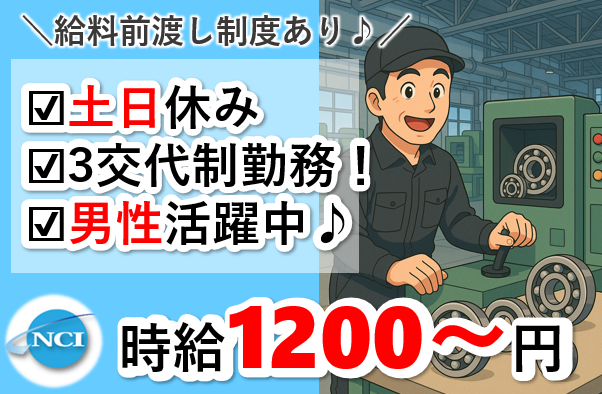 仕事内容 【業務内容】 自動車部品を製造している 会社での勤務になります。 ~主なお仕事の流れ~ 製造オペレーターと呼ばれる 作業を担当していただきます! 具体的な業務は下記になります。 ・マシンを操作 ・材料を配膳する作業 ・寸法確認 ・簡単な検査 ※基本的に立ち作業になります。 ※マシン操作は未経験でもできる カンタンな作業になります。 〇自動車のエンジン部分に 使用される部品の 製造オペレーターのお仕事です! 〇オペレーターと聞くと 難しい作業を想像するかもしれませんが ほとんどのスタッフさんが 製造経験未経験で お仕事をスタートされています! 気軽に工場見学だけでも お気軽にご相談ください! 〇稼げる3交代制勤務!! 1週間ごとの交代制になります。 ○土日休みのお仕事! 長期連休ももちろん完備!! プライベートとの両立も可能です! ===ここもチェック!=== 主婦・主夫活躍中 フリーター活躍中 ブランクOK 学歴不問 即日勤務OK 禁煙・分煙 未経験スタート多数 未経験者活躍中 友達と応募OK 転勤なし 急募 土日休み 長期 直接雇用制度あり 40代応募可 50代応募可 =================