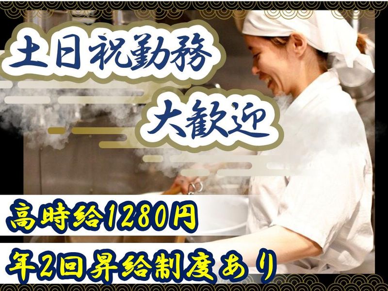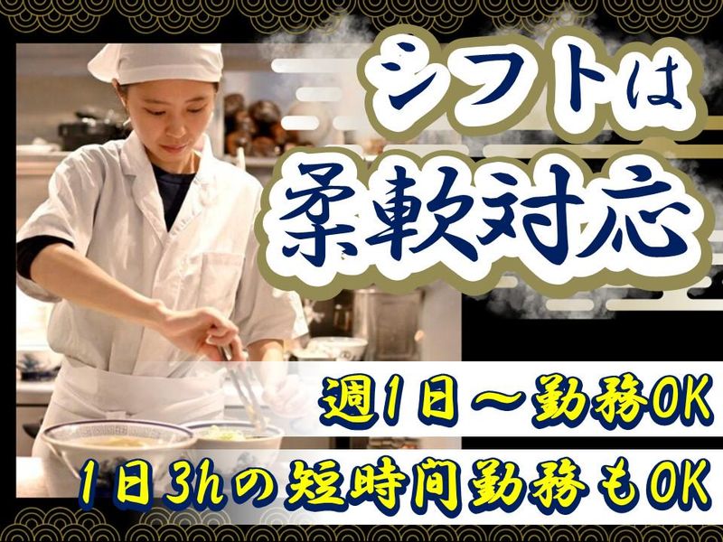仕事内容 / 土日祝勤務のスタッフ募集!! 高時給1280円でガッツリ稼げる! \ <フードコート内の中華そば店> ■注文確認、レジ会計 ■お客様をブザーでお呼び出し ■商品の提供 ■トッピングの盛り付け フードコート内の店舗のため、 配膳や片付けなどホール業務なし♪ \ 近隣店舗のヘルプで稼げる! / シフトの調整次第で近隣店舗の 「ゆめが丘店」のヘルプをお願いする場合も。 シフトカットを減らし、安定して収入を得られます◎ ★―――――――――――――――――★ <魅力がたくさんの待遇> ●交通費・駐輪場代を全額支給 ●絶品まかないが1食165円! ●友達紹介制度で3万円支給 ●昇給年2回 ●頑張るママ・パパ応援! シングルマザー/ファザー手当 ⇒ 時給+50円(規定は待遇欄をチェック) <シフトが柔軟だから働ける> シフトは週1日~の短時間ok! 有給休暇の取得も積極推奨★ プライベートの予定や趣味、 家族との時間もしっかり確保♪ <応募理由様々!みんなで働こう♪> ・子育てや家庭と両立 ・都合に合う時間でパートで働きたい ・ラーメンが好き ・飲食バイトや接客に興味がある ・近場で働きたい、など理由はさまざま! [履歴書不要][面接時、私服ok]なので、 話を聞きたい、すぐ働きたい!が叶います★