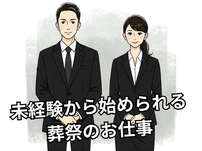 仕事内容 ~ 葬儀セレモニースタッフの募集 ~ 大切な方を亡くされ、不安を抱えるご遺族様に寄り添い、 「最期のありがとう」をつなぐお手伝いをする大変やりがいのある仕事です。 業界・職種未経験の方大歓迎! 専門的なスキル以上に、人に対する優しさ、誠実さ、そしてあなたの持つ人生経験を活かせます。 ご遺族様へ真摯に向き合う仕事だからこそ、社員の心身の健康も大切にしています。 業務はチームで分担し、困ったことや悩みをすぐに相談できる環境です。 常に先輩や仲間がフォローしますのでご安心ください。 ========== 【仕事内容】 ご遺族様が心穏やかに故人様をお見送りできるよう、葬儀全体をサポートするお仕事。 具体的には… ・病院・式場・ご自宅へ故人様のお迎えや搬送 ・葬儀のお打ち合わせ ・見積り作成 ・各種手配、式場設営 ・葬儀・告別式当日の司会や運営 ・集金、アフターフォロー など ========== 【オススメポイント】 ◆未経験者も安心のサポート体制  ̄ ̄ ̄ ̄ ̄ ̄ ̄ ̄ ̄ ̄ ̄ ̄ ̄ ̄ ̄ ̄ ̄ ̄ 入社後すぐにすべてをお任せすることはありません。 最初は先輩スタッフに同行するサポート業務からスタートし、OJTを通じて一つひとつの流れを習得していただきます。 未経験の方でも、安心してプロのセレモニースタッフとして成長できる環境です! 全て最初は先輩スタッフが一から全てお教えするので、自信を持って業務に望めるようになります! ◆安定した給与と手当でしっかり評価  ̄ ̄ ̄ ̄ ̄ ̄ ̄ ̄ ̄ ̄ ̄ ̄ ̄ ̄ ̄ ̄ ̄ ̄ 月給25万円〜40万円と安定した給与からスタート! 昇給・賞与に加え、残業代や待機手当など各種手当も充実しており、あなたの頑張りをしっかり評価します。