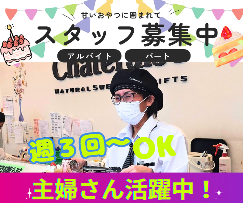 仕事内容 *。・・。*。・・。*。・・。*。・・。*。・・。*。・・。*。・・。* 春から新しいお仕事始めませんか? \\ 家庭優先でOK! // 無理のないシフト組みをしています! *。・・。*。・・。*。・・。*。・・。*。・・。*。・・。*。・・。* お菓子の販売業務全般をお願いします! 具体的には… ✅接客、レジ業務 ✅品出し、包装作業 ✅予約品の準備 ✅開店作業(朝に納品された商品の品出し)など 自動レジなので お釣りの受け渡しがなく安心です‼ ★★アルバイト・パートをお探しの方にオススメ★★ ◆主夫・主婦さん…大歓迎! ◆未経験でも大丈夫!ひとつひとつ丁寧に教えていくので安心してくださいね。 ★★スタッフの声:主婦さん★★ 未経験からのスタートでしたが、 皆優しい方ばかりで丁寧に教えてくれます。 また、家事や育児との両立にも理解のある職場なので自分のペースで働いています。 「接客販売未経験OK」「髪型・髪色自由」なども嬉しいポイントです!
