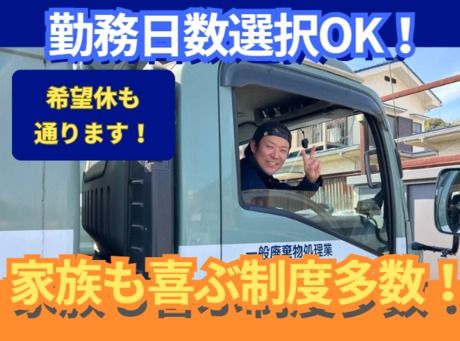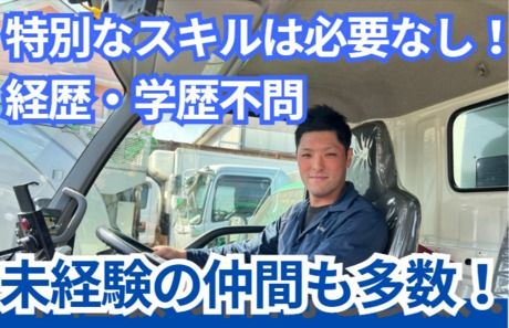 仕事内容 自慢できるのは中型免許くらい。全然それでOK! 特別なスキルや、人に誇れるような立派な経歴、学歴なんてものはいらない。 難しくないけど、力仕事。 それが問題なければ、年収500万以上稼げます。 【こんな自分でも、本当に大丈夫】 ▼1日働けば、18,000円。年収500万円以上の社員も多数! 1日の給料は、日給18,000円以上。例えば週6日で働けば、月収は43万円以上になります。まずは目の前の生活を安定させ、将来のためにしっかり貯金する。年収500万円以上も、十分に手が届く目標です。 ▼仕事は驚くほど、シンプル。 研修で先輩が丁寧に教えますが、覚えてしまえばあとは一人での作業。難しい人間関係や、営業のようなプレッシャーも一切ありません。自分のペースで黙々と仕事に集中できます。 ▼約8割が未経験スタートです。 今活躍しているドライバーのほとんどが、未経験からの挑戦でした。未経験の方は約1ヶ月、経験者でも2週間程度、先輩が隣に乗って研修するところから始めます。焦らず自分のペースで仕事を覚えられるので、安心してください! 【具体的な仕事内容】 STEP1:深夜、決まったコースを走る パッカー車(2t・3t)で担当エリアを回り、お店や会社から出る廃棄物を集めます。 ※ドライブレコーダー、バックカメラ等、安全設備は万全です。 STEP2:集めたものを、焼却場へ運ぶ 回収した廃棄物を、市の焼却場へ運びます。ルートによってはこれを2回繰り返します。 一番重くて20キロほど。ただ、軽いものも多いので、20キロあるものは少ないです。 STEP3:タブレットで、簡単な報告をする 会社に戻ったら、タブレットで「終わりました」と簡単な日報を報告。これが終われば、ほぼ一日の業務は終了です。 ※回収が早く終われば、定時より早く帰宅することも可能です。