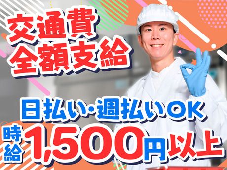 仕事内容 この求人のポイント  ̄ ̄ ̄ ̄ ̄ ̄ ̄ ̄ ̄ 【シンプルな業務】未経験率90%超、難しい作業なし 【働きやすさ抜群】年齢や性別を問わず、活躍できる 【選べる給与規定】嬉しい!日払いや週払いにも対応 24時間営業のスーパーマーケットで、カンタンな 原則、接客はありません。コツコツ系のお仕事です♪ 作業内容について  ̄ ̄ ̄ ̄ ̄ ̄ ̄ ̄ ̄ <惣菜(おかず)の製造> 「製造ってなんだか大変そう…」と思ったあなたへ! 実は、それほど難しくありません。製造業務の中心は 揚げ物づくり。包丁を使うことはなく、調理や製造の 経験がなくても大丈夫です! 使うのは、ほぼ自動で揚げ物ができる専用の調理機器。 真心を込めて商品を投入するだけで、天ぷらや唐揚げ コロッケなどを順番にできあがってくる単純作業です。 <盛付け・パック詰め> 惣菜コーナーにある多様なおかずを思い描いて下さい。 それらの商品の多くはパック(透明の容器)の入って いると思います。ここでは、できあがっている惣菜を パックに盛り付けていく業務をおこないます。 軽作業デビュー歓迎  ̄ ̄ ̄ ̄ ̄ ̄ ̄ ̄ ̄ 業務内容はシンプルだからスグに慣れるはず♪ と言っても、多少は覚えることもあります。 雰囲気の良い環境づくりに力を入れているので 在籍スタッフによる丁寧なサポートのほかにも 現場担当によるフォローもあるので安心です!