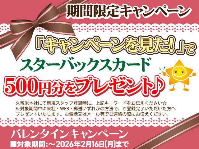 応募方法 ▼お電話の場合▼ まずはお気軽にお電話ください ▼WEB応募の場合▼ 24時間365日受付しております エントリー確認後、折り返しご連絡せていただきます。 折り返しのご連絡はできるだけ早く行うように心がけておりますが、 ご連絡が遅れる場合がございますので、ご了承くださいませ なお、連絡がつきやすい時間帯や連絡先をご記入いただければ幸いです 【ご応募後について】 応募完了後、応募時に入力していただいたメールアドレス・電話番号(SMS)宛に、 応募企業とのメッセージのやり取りを開始するために通知をする可能性がございます。