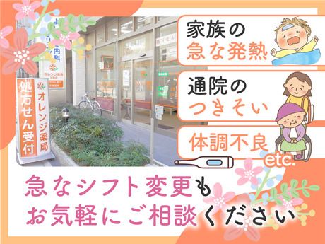 職場環境 【従業員構成】 <20代~50代の主婦パートさんが活躍中> 小さいお子さまのいる子育て真っ只中のママさん 子どもが大きくなって時間に余裕ができたママさん 家計の足しやお小遣い稼ぎに働くママさん キャリアアップを目指しているママさん いずれは正社員を目指しているママさん …など、いろんなパートさんがいます♪ <株式会社オレンジホールディングス> 地域のかかりつけ薬局として 全国に約140店舗の調剤薬局を 展開しています。