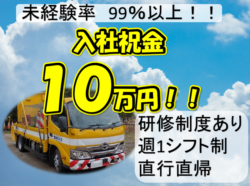 仕事内容 高速道路での規制設置撤去作業 ◆仕事内容 ・高速道路の車線規制時に必要なコーンや看板の設置・撤去 ・回転灯・LED看板搭載の特殊車両や発炎筒を使用して交通規制 ・規制内への車両流入・流出の管理、通行車両の監視、規制内巡回 ・一般道路での同様の業務や交通誘導業務もあり ◆チーム構成 ・基本的に2~8人のチームで作業 ・未経験者歓迎!スタート時未経験率99% ・事前研修あり、チームで動くので安心 ◆シフトと収入 ・週1シフト制で柔軟な働き方が可能 ・働き方次第で月40万円以上も可能 ・シフト提出制で自由な働き方ができる ◆業務内容 ・高速道路や公道の規制材の設置・誘導 ・工事をスムーズに行うための交通規制 ・老朽化が進む現代において重要な仕事 ◆寮完備 ・賃料1ヶ月無料キャンペーン中 ・個室、シェアハウス、共同寮あり ・新築個室寮もオープン、今なら空室あり ◆スキルアップ ・警備業の研修を受けて警備員として規制業務を行う ・資格取得は不要だが、国家資格取得も可能(自己負担なし) ◆四季を感じる仕事 ・春の風や秋の色を感じながら健康的に働ける ・地方の高速道路での応援依頼もあり、季節料理を楽しむことも ・最新の空調服導入で夏の暑さ対策も万全 ・冬の防寒対策もバッチリ ・適度な運動でダイエット効果も期待 ◆その他 ・基本的に直行直帰