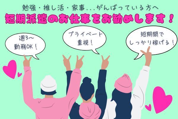 選考フロー <お仕事をしてただく上で、弊社への派遣登録が必要です> ◆まずはWEBからお願いいたします◆ ご応募後、お電話またはメールにて詳細のご連絡をいたします。 応募、WEB登録会のご予約は24h受付中♪ ご質問などございましたらお気軽にお問い合わせくださいませ。 (営業時間:平日9:30~18:30) ◆オンライン登録実施中◆ 来社不要!履歴書不要! 開催は月曜日~金曜日(平日のみ) ダウンロード不要のビデオ通話で 登録会にご参加いただけます♪ ※WEB登録会は完全予約制となります。