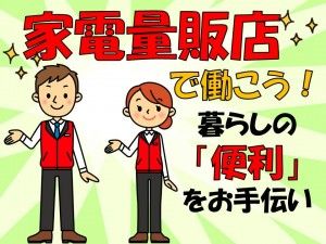 仕事内容 国内大手メーカーエアコンの販売 お客様の感動をダイレクトに感じられるのは接客・販売職のやりがいであり醍醐味! 【お仕事内容】 *担当メーカーの商品ご案内・ご説明 *ご来店のお客様へのお声掛け *詳しい商品説明 *他社との違いなどのご説明 有名メーカーなので知名度もあり、オススメしやすいです! お客様のニーズに合った商品をご案内してください♪ 商品の性能や特徴・魅力などをわかりやすくご説明してください。 お客様に「ありがとう」と言っていただけることが やりがいになります。 ファミリー層が多い賑やかな売場です♪ 男女共に活躍中の活気ある職場です。 *家電販売経験のある方(ブランクOKです!) *人とお話するのが好きな方 *家電が好きな方 *しっかり安定したお仕事をご希望の方 少しでも気になった方は是非お問合せ下さい! ご応募、お待ちしております。 [こんな人が活躍] 男女ともに幅広い世代の方活躍中の職場です!