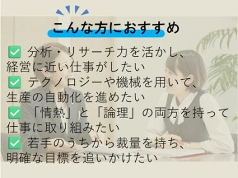 求めている人材 ■2027年4月卒業の方 ■卒業後3年以内の方 ✨ 求める人材 ✨ ✅ お客様に「有難う」と 感謝していただける仕事に魅力を感じる方 ✅ 既存の枠に囚われず、 高い目標を持ち達成を目指せる方 年齢の条件と理由:あり(例外事由3号のイ・26歳未満(長期勤続によるキャリア形成のため))