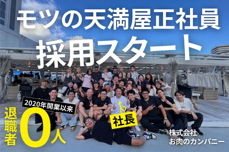 【応募の流れ】 【STEP.1】応募 ▼ 【STEP.2】3営業日以内にご連絡させて頂き、面接日時等の打合せをさせて頂きます。 ▼ 【STEP.3】1次面接 ▼ 【STEP.4】2次面接 ▼ 【STEP.5】内定! ※合否通知は即日または3日以内 ✨LINEからもご応募が可能です! 3枚目の画像から友達登録をしていただき、基本情報を入力するだけ! 面接日の設定や調整などを行なっていきます! アクセス(勤務地) 所在地 【モツの天満屋】新店舗 〒530-0041 大阪府大阪市天神橋5丁目7-5 アクセス JR天満駅より徒歩3分 天満駅から207m ■駅チカ5分以内 【応募方法】 応募フォームまたはお電話/公式LINEにてご連絡ください。 ■職場見学/カジュアル面談実施中■ 『まずは会社や店舗の雰囲気を知りたい』 『興味はあるけど自分に合った仕事か不安』 そんな方はぜひ!カジュアル面談でざっくばらんにお話ししましょう! 【職場見学/カジュアル面談応募方法】 応募フォームで希望のものを選択、または公式LINEで『職場見学orカジュアル面談希望です!』とメッセージを送ってください!