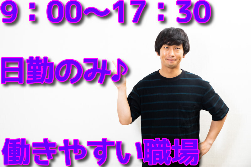 日勤のみ/未経験OK/9:00から始業/モクモク・コツコツ作業/土日祝休み/冷暖房完備/重たいものなし