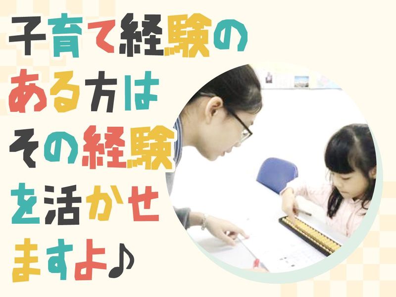 仕事内容 ■子どもが好き、そろばんが好きで、 長く続けられるやりがいのある仕事!! - 《子ども好き&昔そろばんを習っていた!》 そんな方なら大歓迎! ★子育てとの両立・ブランク復帰に理解ある職場で安心勤務OK♪ ★子どもたちの「できた!」がやりがいになる子ども好きな方にはたまらないオシゴト! 阪神間に約50以上の教室を展開するキッズ珠算会で そろばんを子どもたちに教える講師を募集します! 講師経験はなくてもOK! 「昔そろばんを習っていたけど、長い間触っていない…」という方も 安心して始められるよう充実した研修がありますので、お気軽にご応募ください! - \家庭と両立する主婦・主夫さんスタッフが活躍できる職場です!/ ■「子どもが大きくなったから久しぶりに仕事復帰したい」 そんな主婦・主夫さんが仕事と家庭を両立しながら多数活躍しております! - \point!★/ ■シフトが柔軟! ⇒勤務時間・日数の相談にも対応可能! ■家庭事情で退職しても復帰OK ⇒妊娠・出産・育児・介護などを理由に退職した場合でも再雇用可能なので、長く安心して働き続けられます。 - 条件以外にも、 子どもたちの成長が喜びに繋がるやりがいもあります! 試験に合格できたときの喜びや達成感はこの上なく嬉しい瞬間ですよ。 仕事も家庭も充実させたいという方が無理なく安心して働ける職場で、 一緒に子どもたちと楽しくオシゴトをしませんか?
