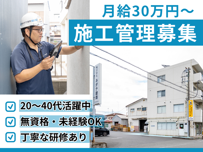 仕事内容 ・✦✨新着求人✨✦・ ⏩月給30万円~で高収入! ⏩資格・経験不問! ⏩昇給年1回、賞与年2回有◎ ⏩福利厚生充実◎ ✦・┈┈┈┈┈ ・✦✦・┈┈┈┈┈ ・✦ 【仕事内容】 ✅現場立ち合い(1日3~4件) ✅現場の進行確認 ✅簡単な現場のお手伝い ✦・┈┈┈┈┈ ・✦✦・┈┈┈┈┈ ・✦ 【➰地域に根ざした安定基盤➰】 横浜市磯子エリアを拠点に、 長年にわたって住まいづくりを 手がけてきた株式会社ネダテ建商。 工務店や取引先から継続的に ご依頼をいただいており、 安定した環境でキャリアを築けます。 社員一人ひとりが 「安心」と「やりがい」を 実感できるよう、 会社全体で支えています! ✦・┈┈┈┈┈ ・✦✦・┈┈┈┈┈ ・✦ 【➰未経験スタート歓迎➰】 基礎を学ぶ研修やOJTを通じて、 自分のペースで焦らず着実に 知識とスキルを身につけられます。 先輩たちがすぐそばでしっかり サポートしてくれるので 「現場に放り出される」心配ナシ! ✦・┈┈┈┈┈ ・✦✦・┈┈┈┈┈ ・✦ 【➰現場全体を動かすやりがい➰】 施工管理の役割は、職人さんと 連携しながら工程や品質を整え、 現場を円滑に進めていくこと。 自分の判断や調整が プロジェクトを形にしていく実感は、 他では味わえないやりがいです! ✦・┈┈┈┈┈ ・✦✦・┈┈┈┈┈ ・✦