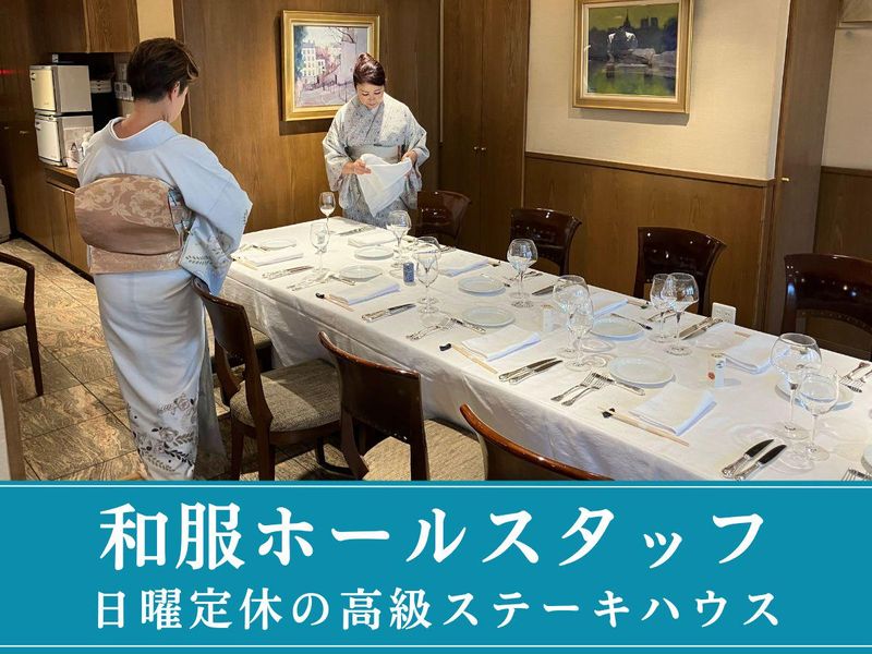 仕事内容 ✨着物を着ての接客業務✨  ̄ ̄ ̄ ̄ ̄ ̄ ̄ ̄ ̄ ̄ ̄ ̄ ̄ 中央区築地にあるステーキ店で 和服での接客業務。 ⏩お客様は常連のお客様が中心で 上品で落ち着いた接客が出来ます♪ ⏩築地駅より徒歩3分の駅チカ! 周辺には有楽町線や都営浅草線、 都営大江戸線など、 アクセスも便利です♪ ⏩女性スタッフが活躍中! ⭐お店について⭐  ̄ ̄ ̄ ̄ ̄ ̄ ̄ ̄ ̄ 選び抜かれた和牛を 丁寧に焼き上げる、 本格ステーキ店「築地藤田」。 築地の一角に佇む、 大人の隠れ家的なお店は、 政財界の方や著名人にも 愛される名店です。 未経験スタートのスタッフも多数在籍中。 安心の研修とフォロー体制で しっかり成長できます! チームワークも抜群◎ 落ち着いた雰囲気の中で、 一流のおもてなしを 身につけられる職場です♪ ⊹・ ┈┈┈┈┈┈ ・⊹ ・ ┈┈┈┈┈┈ ・⊹ ⭐先輩からのメッセージ⭐  ̄ ̄ ̄ ̄ ̄ ̄ ̄ ̄ ̄ ̄ ̄ ̄ ̄ 高級感のあるお店で最初は 緊張しましたが、先輩が丁寧に 教えてくれたので、 安心してスタートできました。 スタッフ同士の仲が良くて、 明るく元気な雰囲気も とても気に入っています。 もちろん失敗することもありますが、 それ以上に良いところを しっかり見てくれて、褒められる 機会のほうが多いんです。 「高級店は初めて」「久しぶりの仕事復帰」 そんな方でも始めやすい職場ですよ! ⊹・ ┈┈┈┈┈┈ ・⊹ ・ ┈┈┈┈┈┈ ・⊹ ✤着付に慣れていない方でも 一対一で丁寧に指導いたします♪ 着物も慣れてくると 15分くらいで着れるようになります♪