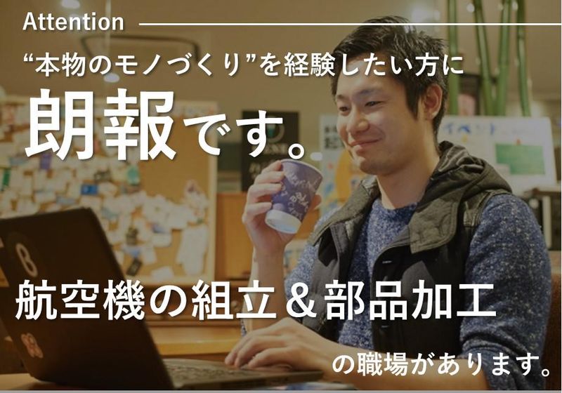 仕事内容 航空機部品の加工をお任せします。 電動工具などを使用し一点一点、手作業で航空機部品を仕上げていきます。 1人作業が中心にはなりますが、チーム全体でサポートしながら進めていくので 未経験もでOKです。 はじめは工場、製造に係るルールなどの教育から始まり、 現場で教えてもらいながら、簡単な事からスタートしていきます。