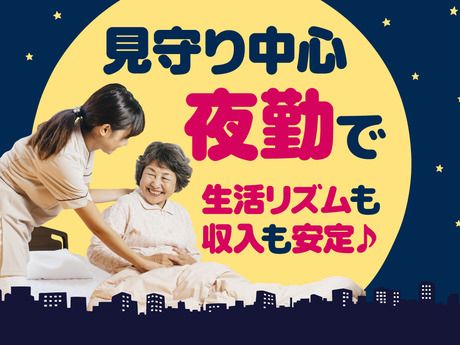 仕事内容 「夜勤に入った経験は少なくて…」という方も歓迎!回数少な目、ちょっと静かな時間帯でお仕事しませんか? 夕方~朝にかけて、 患者様の身のまわりのサポートをお願いします。 【具体的には…】 ■入院患者の見守り業務 ■イブニングケア ■トイレ誘導 ■食事の下膳・配膳 ■清掃 …など 患者様の夕食を運んだり、 就寝前にベッドを整えたり、 洗面や排泄のお手伝いを行います。 入社後は先輩スタッフがついて 丁寧にお仕事を教えていきますので 医療の知識や資格のない方でもOK◎ 分からないことはその場で 質問いただいて大丈夫です! (*・ω・){スタッフの声 【週2回勤務/経験者/40代女性】 基本週5日勤務の日勤シフトで 長年働いていたんですが、 早番・中番・遅番の交替勤務が 年々キツくなってしまって… 専従で入れるなら、回数少な目でも稼げる 夜勤の方が良くない?と 一念発起して、夜勤に切り替えました。 実働時間は前よりも大分長くなってますけど、 出勤回数自体は前より少ないので、 生活リズムは前より整ってる気がします。 子供の学費もまだまだかかりますし、 自分の老後資金も貯めておきたいので、 しばらくは夜勤で続けていくつもりです。 慣れてきたので回数増やしても良いな~と思ってます。 【入社日の相談OK】 「スグ働きたい」「来月から」 「今の職場で賞与を貰ってから」 などあなたのタイミングでOK◎ 在職中の方もぜひご応募ください! <OT_A>