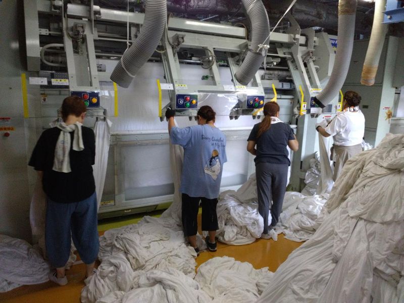 シーツなどの洗濯ものの仕上げスタッフ