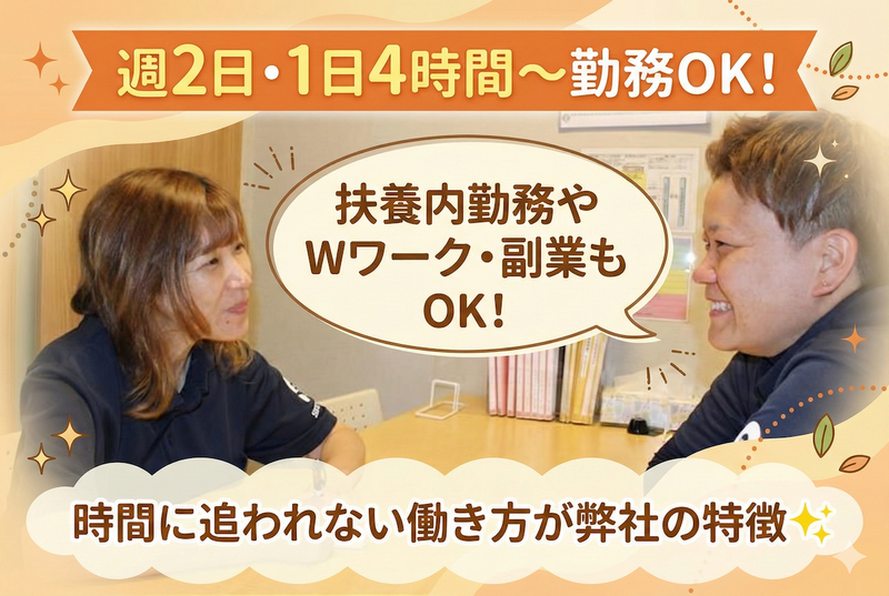 仕事内容 〜〜〜この求人のアピールポイント〜〜〜〜 ✅施設内の介護業務!残業はありません! ✅余裕のあるスケジュールで入居者様の対応◎ ✅週2日・1日4時間~OKです! ✅扶養内勤務やWワーク・副業もOK! ✅エクシブ会員でリゾートホテルにお安く宿泊可能! 〜〜〜〜〜〜〜〜〜〜〜〜〜〜〜〜〜〜〜〜〜 【仕事内容】 住宅型有料老人ホーム(全37床)での 介護業務をお任せします! 介護職員として入居者様に生活援助、 身体介護をおこなっていただきます。 ✨時間に追われない働き方が弊社の特徴✨ 時間に余裕のある設定がされているので、 次のサービスまで時間に追われることなく 入居者様と1対1で向き合えます◎ ✨ケア伝票はスマホ入力なのでラクラク!✨ スマホやデジタルが苦手な方でも 丁寧なサポートでスグに習得可能! スムーズに作業ができるようになったと好評◎