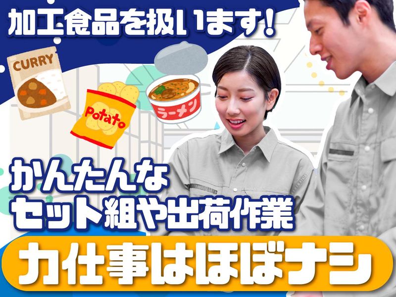 仕事内容 求人のポイント  ̄ ̄ ̄ ̄ ̄ ̄ ̄ ̄ ̄ ̄ ̄ ̄ ̄ ̄ ̄ ̄ ̄ ̄ ̄ ̄ ✨事業拡大につき、新規メンバー募集✨ 【未経験大歓迎◎】誰でもカンタン軽作業♪ 【完全週休2日制】曜日固定シフトが嬉しい 【選べるキャリア】多彩な働き方が選べる♪ 【交通費全額支給】車・バイクでの通勤もOK 具体的には…  ̄ ̄ ̄ ̄ ̄ ̄ ̄ ̄ ̄ ̄ ̄ ̄ ̄ ̄ ̄ ̄ ̄ ̄ ̄ ̄ 大手ECサイトの商品を取り扱う物流センター で、カンタンな軽作業をお任せ致します! 力仕事はほとんどナシ!未経験からでも安心 なシンプルワークです♪ 【商品のアソート作業】 複数の商品を袋や箱に詰めて、セット組を する作業です! 例えば… ✅カレーの甘口×5個のセット組み ✅味噌ラーメン×3個のセット組み ✅飴×5種類をセット組み、etc… 上記のように複数の商品を1つにまとめて いきます!さまざまなレパートリーの食品 を扱うので、単調なだけの作業にならず、 カンタンだけどやりがいのある作業です♪ 【出荷作業】 アソートした商品を各20拠点ほどの物流 センターへ向けて仕分けて行く作業です。 依頼(必要な個数)は伝票に記載されており、 例えば… ✅A拠点に1000セット ✅B拠点に5000セット というように、商品によって1,000~10,000 セットをそれぞれの拠点別に仕分けていきます! ★担当作業をしっかりとこなせるようになれば、 次第にスタッフのシフト管理などの管理業務 にも関わることが可能です! 【取り扱うのはこんな商品】 カレーやスープなどのレトルト食品やカップ ラーメンなどのインスタント食品、お菓子類 などの加工食品を扱います。どれも片手で 持てるほどの、軽い商品ばかりです! 選べるキャリアプラン  ̄ ̄ ̄ ̄ ̄ ̄ ̄ ̄ ̄ ̄ ̄ ̄ ̄ ̄ ̄ ̄ ̄ ̄ ̄ ̄ ☆キャリアアップのイメージ☆ ~現場スタッフからマネジメント職へ~ 現場の作業スタッフ ↓ 現場のリーダー ↓ 現場の責任者 ↓ エリアマネージャー 当社では、スタッフの望まないキャリアを無理 に押し付けるようなことは絶対にいたしません! 現場のスタッフとしてコツコツ頑張りたい方も 早く昇格してマネジメントしたい方も、自身の 望むキャリアプランを築けるように応援してい ます。 事業内容について  ̄ ̄ ̄ ̄ ̄ ̄ ̄ ̄ ̄ ̄ ̄ ̄ ̄ ̄ ̄ ̄ ̄ ̄ ̄ ̄ 製造業や物流・倉庫業を中心に、質の高い人材 サービスを提供しています。食品やコンビニと いった生活インフラと密接にある大手クライア ントが多く、景気の波に左右されない安定した 事業基盤を築いております。このような環境で 働くことは従業員にとっても魅力的なポイント になると考えております。